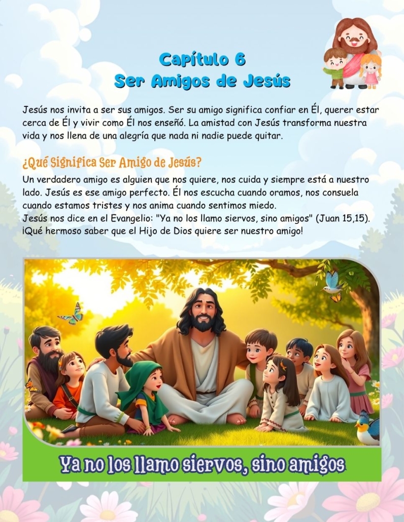 Jesús, Mi Mejor Amigo es un hermoso e-book católico diseñado para que los niños descubran el amor de Dios a través de historias, reflexiones, curiosidades y actividades que los conectarán con su fe de forma natural y divertida.